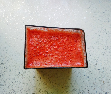 Тоже раньше делала через соковыжималку, быстро, но остается очень много жмыха, поэтому в этом году решила сделать через миксер (коктейльный), никаких семечек и шкурок после него не остается, пропустила через сито, с помощью поварешки, довольно быстро. Жмыха минимум и сок получается густой.