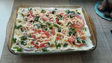 Отзыв 3: Очень понравился рецепт лазаньи из лаваша с фаршем в духовке. Лазанья из лаваша, действительно, получается ничуть не хуже оригинальной, на мой взгляд, даже вкуснее. И готовится такая лазанья, конечно, быстрее. Автор четко и детально расписывает процесс приготовления этого блюда. Следуя всем рекомендациям, даже начинающий кулинар справится со всем. А какой великолепный рисунок у автора на лазанье! Казалось бы, немного кусочков помидоров, маслин, лука, чуть-чуть зелени, ничего особенного, а какой замечательный рисунок получился. Очень оригинально! Нельзя не проголосовать за этот рецепт!