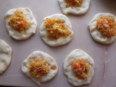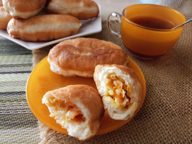 Испекла пирожки на сырых дрожжах. Несмотря на то, что тесто замешивалось безопарным способом, оно хорошо поднялось. Пока тесто поднималось, приготовила начинку из капусты, жареной с морковью и луком. Тесто получилось мягкое, приятное в работе, при жарке отлично поднимается. Я точно выдержала рецептуру, предложенную автором, пропорции ингредиентов подобраны точно. Спасибо автору за рецепт!
