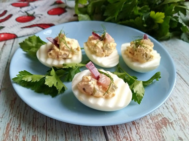 Мне нравятся фаршированные яйца с любой начинкой. Это и вкусно, и быстро, и праздничный стол легко украсить.