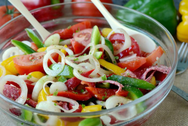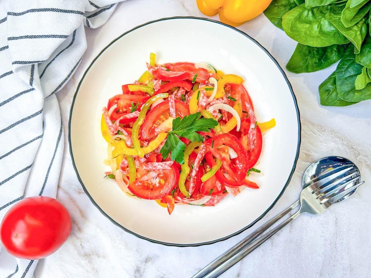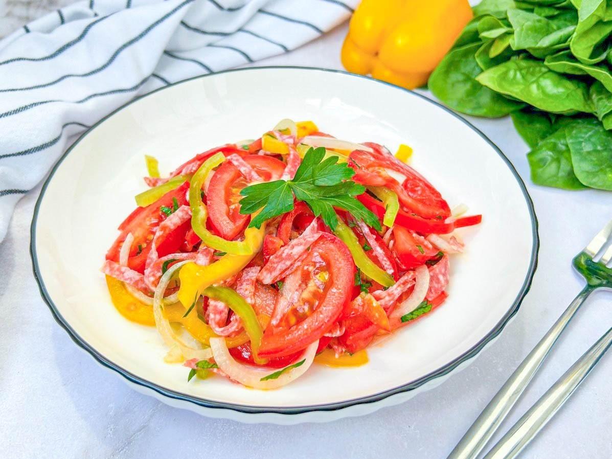 Венгерский салат — это традиционная овощная закуска, популярная в венгерской кухне. Чаще всего его готовят из болгарского перца, лука, помидоров и копчёной колбасы или салями. Идеален для любителей насыщенных и пикантных вкусов. Подходит семьям, ценящим простоту и яркие вкусы.