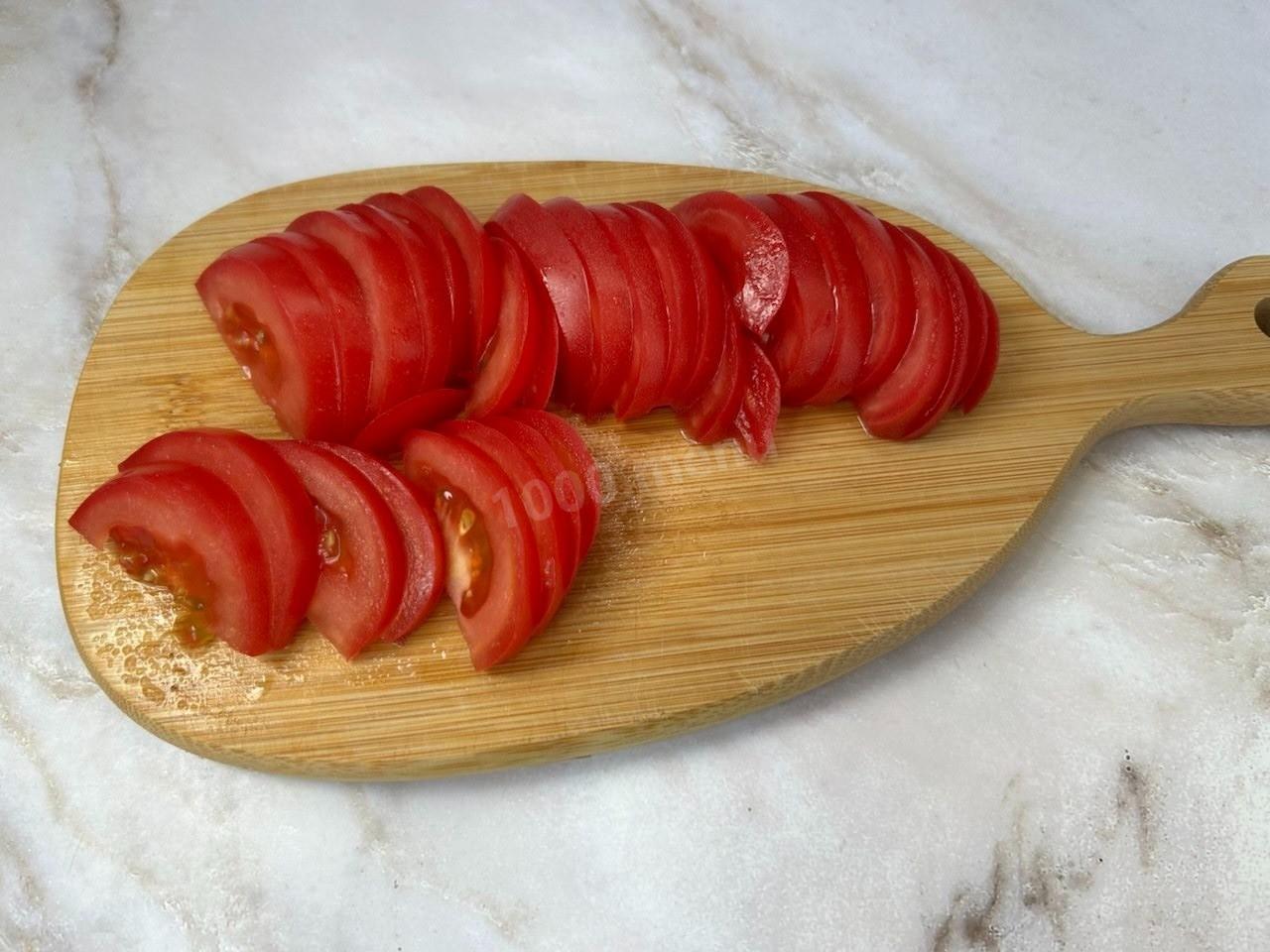 Помидоры выбирайте сочные, но плотные. Мягкие плоды плохо держат форму, в процессе нарезки и приготовления они расползутся в бесформенную массу и испортят внешний вид блюда.