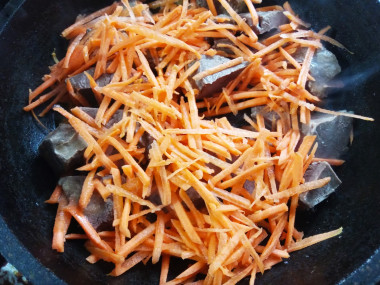 Добавьте к сердцу морковь и жарьте все вместе еще 2-3 минуты.