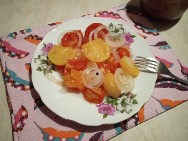 Заготавливала помидоры резаные на зиму с луком по этому рецепту. Открыли баночку и остались очень довольны. Процесс приготовления заготовки не сложный. Прекрасно подходят крупные помидоры, которые не входят в банку целиком. Очень удачный рецепт! Это получается настоящий салат. Лук великолепный получился, он невероятно нежный, хрустящий и сочный. Маринад просто сногсшибательный, в итоге я его допила) Помидоры кусочками очень аппетитные, нереально вкусные, сладковатые и прям сами запрыгивают в рот. Теперь это моя самая любимая заготовка из помидор. Огромное спасибо!