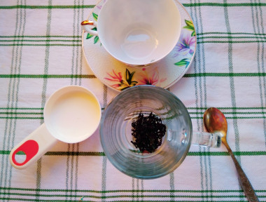Для приготовления чая лучше использовать крупнолистовую заварку (по-моему, вкус у напитка, приготовленного из такой заварки намного насыщеннее и ароматнее, чем из чайного пакетика), но если нет времени или нет такой чайной заварки, то можно воспользоваться и обычным чайным пакетиком с черным чаем.
