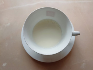 В чайные чашки налейте молоко. Молоко для приготовления напитка можно использовать любой жирности по вкусу и желанию. Естественно, чем выше жирность, тем калорийнее получится напиток. Молоко нужно наливать в чашки раньше, чем заваренный чай. И не стоит добавлять его много, чтобы оно не заглушило своим вкусом вкус чая.