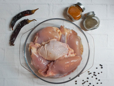 Как запечь бедра куриные на противне в духовке? Для начала подготовьте необходимые ингредиенты по списку. Вместо куриных бедер можете использовать любые другие части курицы: грудки, голени, окорочка. Можете заменить мясо с костью на филе. Но учтите, что время приготовления и калорийность изменятся.