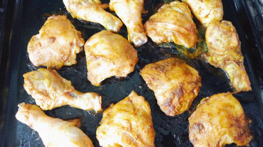 Голени и бёдра мариновались около 3,5 часов, запекались 50 минут.
