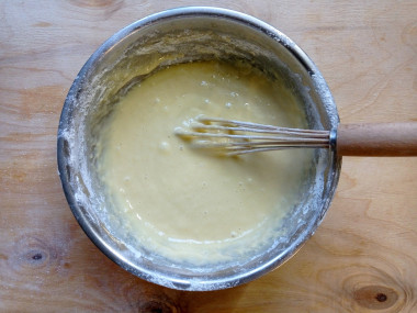 Вмешайте муку до однородности. Будьте готовы к тому, что муки может потребоваться больше или меньше, чем указано в рецепте. Ориентируйтесь не на количество муки, а на желаемую консистенцию теста. Тесто должно получиться как густая, но текучая сметана.