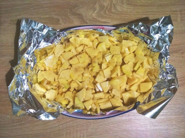 Прежде чем выкладывать сомнительные рецепты, купи посуду. Алюминивая фольга это путь к раку желудка, болезни Альцгеймера и других. Обрати внимание какая становится фольга до запекания и после. Она отдала тебе все что нужно для рака желудка, пусть небольшую порцию, но если часто готовишь в фольге,вредное вещество накопиться в тебе и рак 100% гарантирован. Хотя сейчас и жить говорят вредно. Фрукты для длительного хранения обрабатываються дифенилом, а это очень вредно, в Евросоюзе и США запрещён, а у нас жрите на здоровье и умирайте от рака, вода с крана разъедает трубы. У нас к примеру даже вода хуже технической. Покупаем разливную в магазине для питья и приготовления пищи.