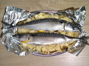 Приготовила на ужин скумбрию с картошкой в фольге в духовке. Я не обрезала голову у рыбы, но тщательно удалила из неё жабры, в них могут собираться соринки. Рыбу не только полила лимонным соком, но и поместила несколько лимонных долек в брюшко. Уложила всё в большой кусок фольги, сверху накрыла другим листом и запекала. Уже не раз готовила подобные блюда, и каждый раз не устаю восторгаться ими - простые, сытные, вкусные, не ужин, а праздник! Спасибо за хороший рецепт.