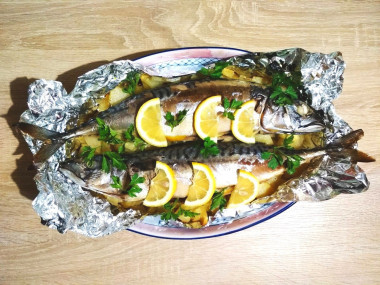Достаньте скумбрию из духовки, приоткройте фольгу и отправьте опять в духовку на 25-30 минут, чтобы рыбка подрумянилась.