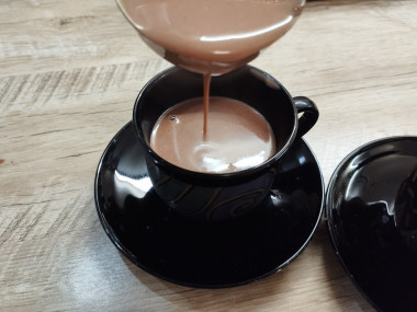 Вернулась поздно домой вся продрогшая. Решила сварить горячий шоколад. Получился превосходный согревающий напиток. Приготовила на молоке жирность 3.2. Вместо корицы добавила ваниль. Получился приятный аромат нежного молочного шоколада. Обязательно приготовлю еще. Быстро и очень вкусно.