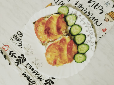 Я следовала шагам согласно рецепту. Помидор был большой, поэтому нарезала его полукругом.