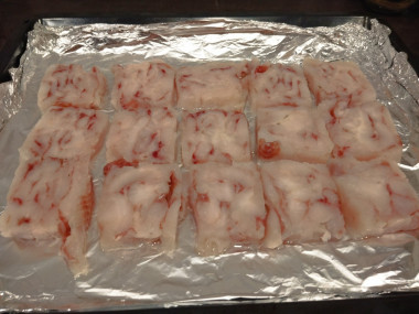 Равномерно полейте соусом рыбу в форме для выпекания.