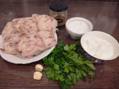 Как запечь филе минтая в сметане в духовке? Подготовьте все необходимые ингредиенты. Проще всего купить филе в магазине, но можно снять его с тушки самостоятельно. Как правильно разделать рыбу на филе читайте после описания рецепта.