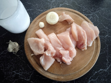 Как сделать курицу со сливками и сыром на сковороде? Подготовьте для этого необходимые ингредиенты. Для приготовления можно использовать любые части курицы. Я буду готовить филе куриных грудок. Мне оно нравится тем, что совсем нет костей. Сливки можно использовать любой жирности. Чем они будут жирнее, тем более сливочный вкус будет у готового блюда.