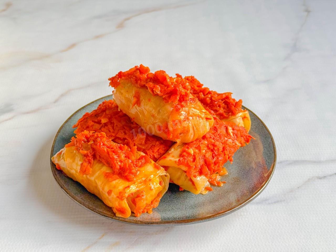 Фарш сделала свиной. Вяленые помидоры заменила на лечо. Запекала голубцы в духовке 50 минут при 200 градусах, как и рекомендуется в рецепте. В мой противень уместилось 14 голубцов. Из оставшегося фарша и капустных листьев приготовила ленивые голубцы.