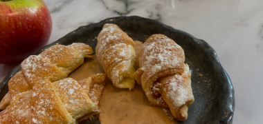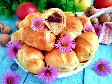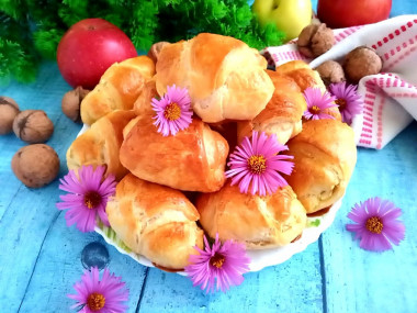 Простые и очень вкусные рогалики. Из готового слоеного теста можно испечь вот такие шикарные круассаны с оригинальным кремом.