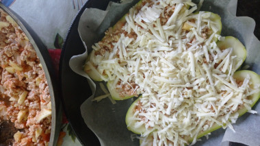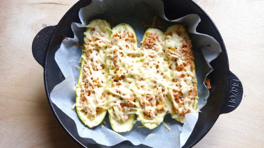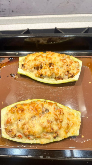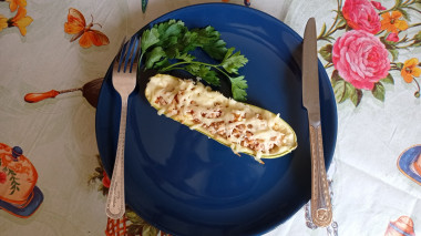 Фаршированные кабачки с фаршем и сыром запеченные в духовке