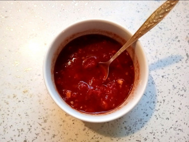 Приобрели свиные ребра и захотелось мне приготовить их пока свежие. Выбрала подходящий маринад для свиных ребрышек. Очень понравился состав, сразу понятно, что получится вкусно. Сейчас зима, летних помидоров нет. Зато у меня есть замороженные красные помидоры, напитанные летним солнцем). Предварительно разморозила два средних помидора, затем взбила в блендере вместе с чесноком. Следующим этапом добавила острый томатный соус, соевый соус и травы. Зиры и гвоздики взяла поменьше, для меня они слишком сильно пахнут. В последнюю очередь добавила к соусу сметану 25%. Перемешивала все ложкой, мне кажется тут не особо важна однородность. 700 г. ребрышек покрылись маринадом очень даже обильно. А значит мясо пропитается полностью. Мариновала ребрышки в течение ночи, а затем запекла.