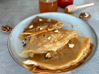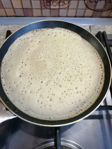 У меня никогда не получались блины с дырочками. В поисках идеального рецепта нашла блины на ряженке тонкие и начала готовить. Взбила яйца с сахаром и солью к ним добавила ряженку, затем соду. Просеянную муку добавляла постепенно. В конце тонкой струйкой добавила кипяток, постоянно помешивая. Добавила растительное масло и оставила на 10 минут. Сковороду ни чем ни смазывала, она у меня антипригарная, ни чего не прилипало и блинчики хорошо переворачивались. Блины по такому рецепту получаются тонкими и с дырочками, как мне и хотелось. На вкус нейтральные, что тоже устроило, так как подавала я их и со сметаной, и с вареньем, и шоколадной пастой с фруктами. Благодарю автора за рецепт идеальных блинчиков.