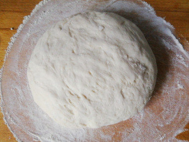 В тёплую воду добавила сахар и сухие дрожжи. Сахара взяла немного - 3 чайные ложки. Поставила смесь в теплое место на 10 минут. После этого замесила тесто, которое получилось очень нежное, чуть липкое. Дала постоять ему 1,5 часа.