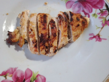 К получившемуся маринаду добавьте куриное филе целым куском. Хорошо его обваляйте в маринаде, чтобы он покрыл куриное мясо со всех сторон. Накройте чашу с мясом крышкой или пищевой пленкой. Оставьте в таком виде на 1-2 часа, чтобы мясо промариновалось.