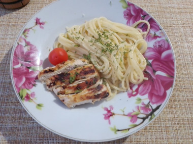 Куриное филе с гарниром, это универсальное, быстрое и вкусное блюдо. Единственно, надо дать мясу время промариноваться.