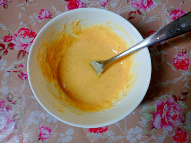 Спасибо большое автору за подсказку, что кляр надо делать заранее. Так он и вправду лучше обволакивает продукт и не сползает при переворачивании. Также по совету автора разделила яйцо на белок и желток и по отдельности взболтала, после чего смешала их.