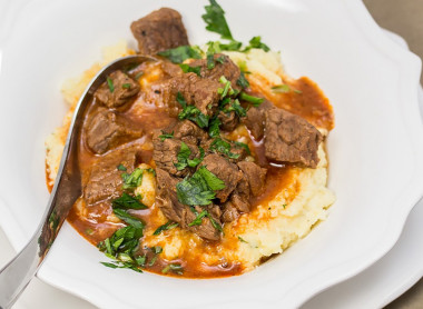 Лучший выбор заботливых мам - съедят все и с удовольствием! Гуляш с подливкой как в детском саду из говядины не займет у вас много времени и сил, поэтому с ним справится и начинающий кулинар. Можете подавать его с любым гарниром. Лучше всего с картофельным пюре или макаронами.