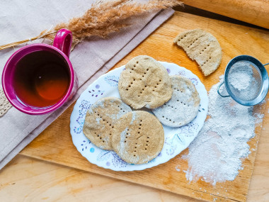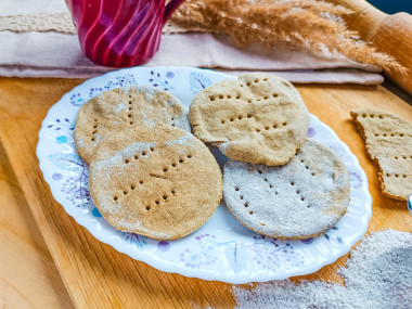 Муку я просеяла, добавила соль, немного сахара,соду. Все перемешала. Затем добавила масло растительное,смешанное с водой. Перемешала и замесила мягкое тесто. Скатала в шар, положила в пакет и убрала в холодильник на 30 минут. Затем раскатала тесто скалкой, вырезала стаканом кружочки ( я делала потолще). Выложила на противень и выпекала при 180° 20 минут. Вкусные как в горячем,так и в холодном виде.