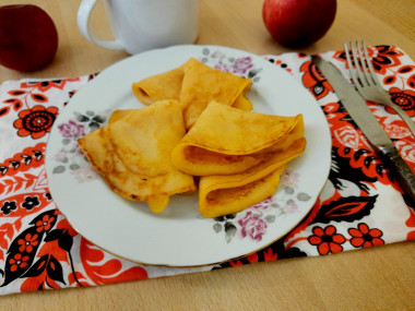 Блины из тыквы получаются очень нежные с легким привкусом восточных сладостей. А ярко-оранжевый цвет поднимет настроение всем, без исключения.