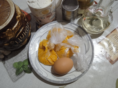 Калорийность продуктов: Тыква, Пшеничная мука, Яйца, Кефир, Сахар, Растительное масло, Соль