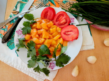 Кабачки в нашей семье любят. Благодаря Хрумке, я уже освоила много интересных и очень вкусных блюд из них. Этот рецептик мне приглянулся простотой приготовления. Кабачки тушеные в сметане я готовила уже несколько раз. Для приготовления использую не сковородку, а небольшой сотейник. В нём всё отлично получается. Блюдо готовится быстро! Кабачки получаются очень вкусные, сочные и нежные! Вкус сметаны прекрасно сочетается с кабачками. Чеснока беру больше. Последний раз, когда готовила это блюдо, к сметане добавила немного томатного соуса (на фото как раз такой вариант). Мне очень понравилось такое сочетание!