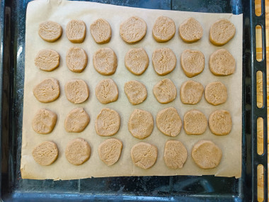 Из отлежавшегося теста сделала колбаску и нарезала её на шайбочки. Выпекала пряники на силиконизированном пергаменте 12 минут при 180 градусах на среднем уровне духовки. После остывания пряники немного затвердели, но не критично.