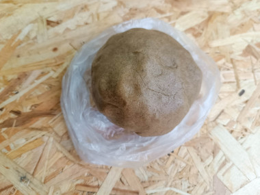 Смешиваем ингредиенты с помощью вилки, затем вымешиваем руками. Тесто должно получиться мягким, упругим, блестящим и при этом не липнущим к рукам. Скатываем тесто в шар, заворачиваем его в пленку и отправляем в холодильник. Минимальное время выдерживания в холоде - 1 час, храниться тесто может достаточно долго, в холодильнике до недели.