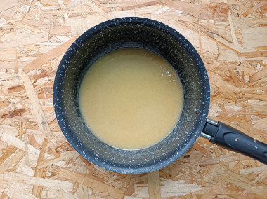 В сотейнике с толстым дном соединяем мед с маслом и коричневым сахаром. Ставим на медленный огонь, чтобы сахар не начал гореть, и дожидаемся, пока масло растает. Сахар может оставаться крупинками, размешиваем вилкой получения однородной массы. Остужаем. Если необходимо остудить быстро, можно перелить холодную кастрюлю, если время есть, оставляем в этой же.