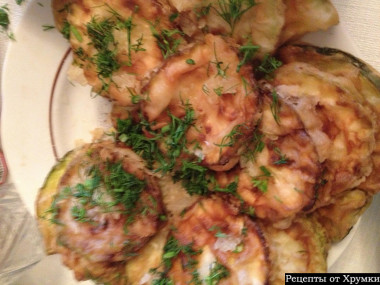 Очень простой и вкусный рецепт. Я еще люблю летом перекладывать между кабачками кружочки помидоров. Кабачки можно использовать не только свежие но и замороженные. Замораживать надо сразу помыв и порезав на кружочки. Замороженные кабачки перед жаркой не размораживать.