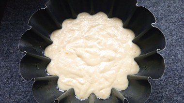 Выложить тесто в смазанную сливочным маслом форму для выпечки. Выпекать около 45 минут при 180°С. Проверять готовность деревянной шпажкой.