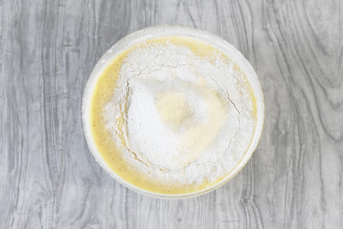 Всыпать мучную смесь в тесто.