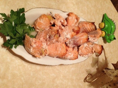 Семга — благородная красная рыба идеально подходит для блюд со сметанной заправкой.