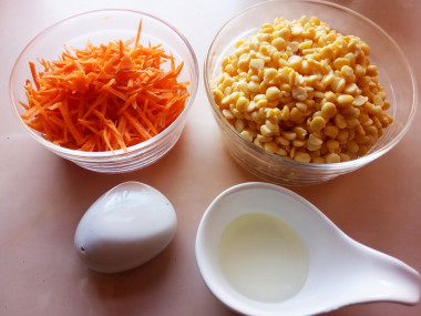 Свежую морковь очистите и натрите на терке. Можете также нарезать ее большими брусочками или кубиками.
