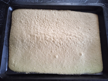 Готовый бисквит вынимаем из формы, снимаем бумагу, остужаем и подаем к столу либо используем для тортов.