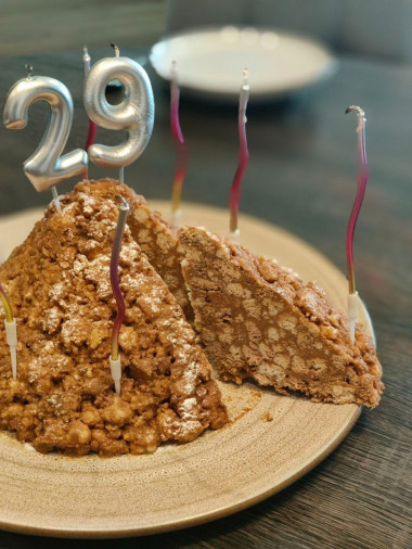 Впервые готовила торт "Муравейник", рецепт понравился, но возникли сложности с выпеканием печенья. Советую не натирать тесто на терке, как это сделала я, так как в результате терки у меня вышли маленькие крошки и среднего размера кучки вновь слипшегося теста, в результате чего маленькие крошки подгорели, а средние кучки выпеклись в самый раз при 20 минутах выпекания. К счастью, за ночь торт настоялся, и горький привкус печенья ушел, но в следующий раз думаю либо нарезать полученные колобки теста на дольки равной толщины и равного размера, либо же просто сразу купить готовое печенье и не мучаться :)