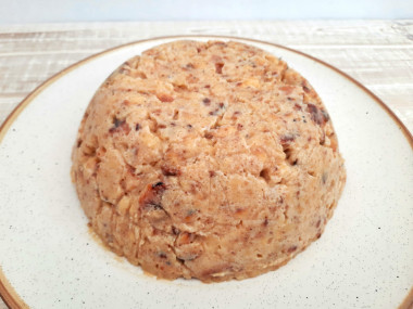 Далее сформируйте торт нужной формы (горки). Для этого выкладывайте частями тесто, придавая ему форму горки. Или же застелите пищевой плёнкой ёмкость (миску), выложите туда тесто с кремом, утрамбуйте, а потом переверните его на блюдо для торта. Готовый торт можно украсить по своему желанию — шоколадом, орехами, маком, а можно оставить так, как есть. Для пропитки теста кремом торту лучше постоять в холодильнике не менее 12 часов.