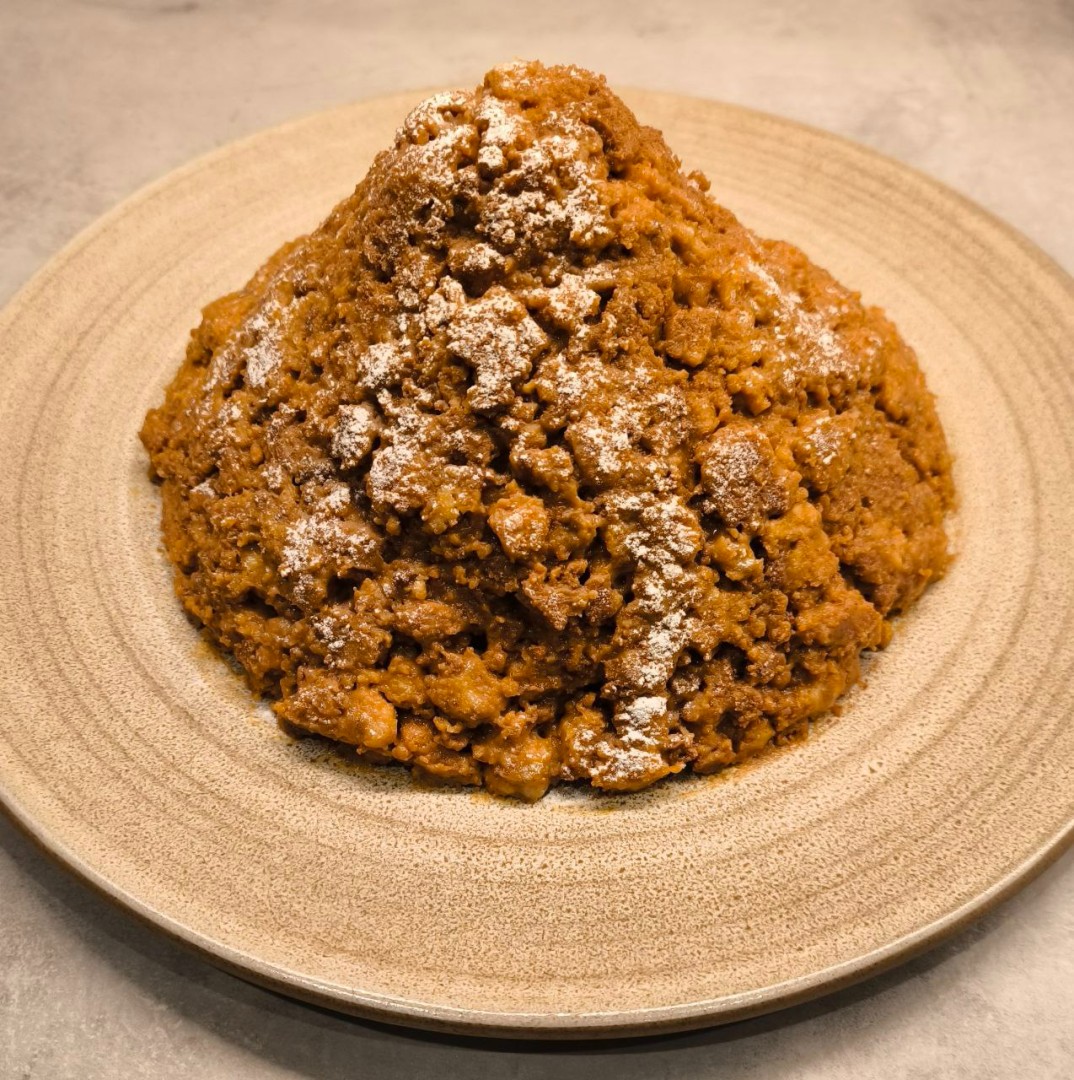 Готовые кусочки теста охладите до комнатной температуры и разомните руками: структура должна быть неоднородная, пусть в торте будут и большие кусочки и совсем крошка.