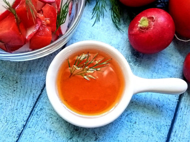 Вот такая золотистая, пряная и восхитительно ароматная заправка для салата получается после перемешивания. Заправляете ей овощные салаты, угощайте родных и друзей и наслаждайтесь великолепным вкусом. Приятного аппетита!