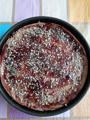 Форму для запекания (Ø 25-26 см) смажьте растительным маслом. Вылейте в форму большую часть теста (2/3 части).