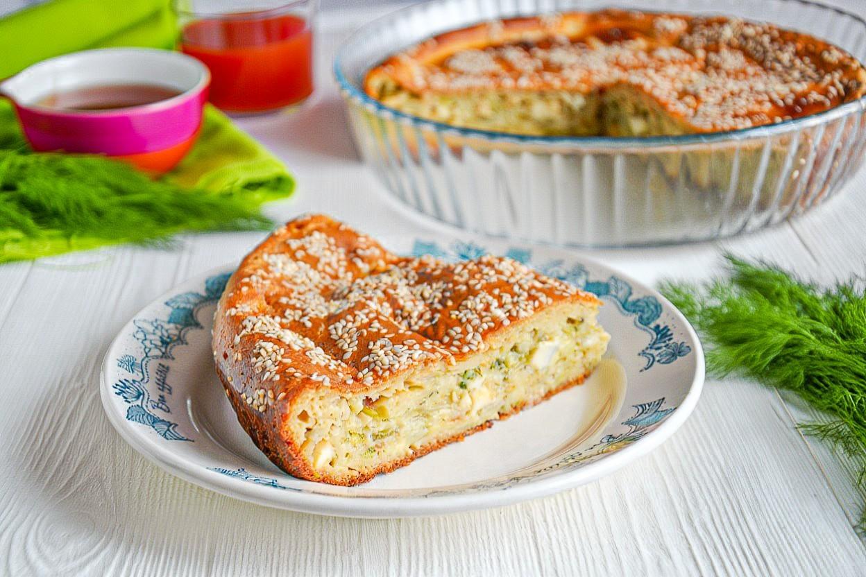 Сверху посыпьте кунжутом. Выпекайте пирог в предварительно разогретой до 190°С духовке около 40 минут. Верх пирога должен подрумяниться. Время указано приблизительно и будет зависеть от особенностей работы вашей духовки. Подробнее читайте в стать в конце рецепта.